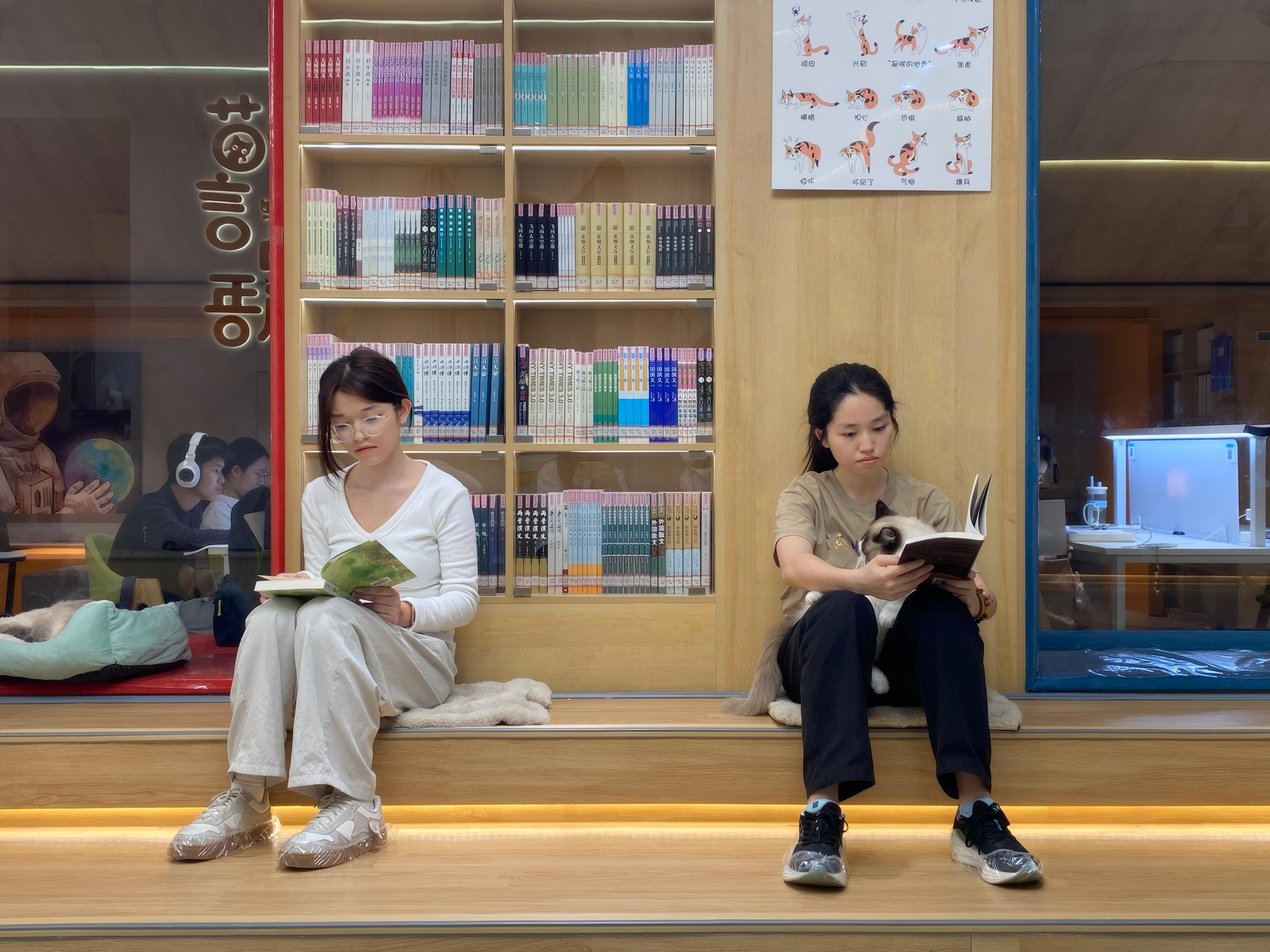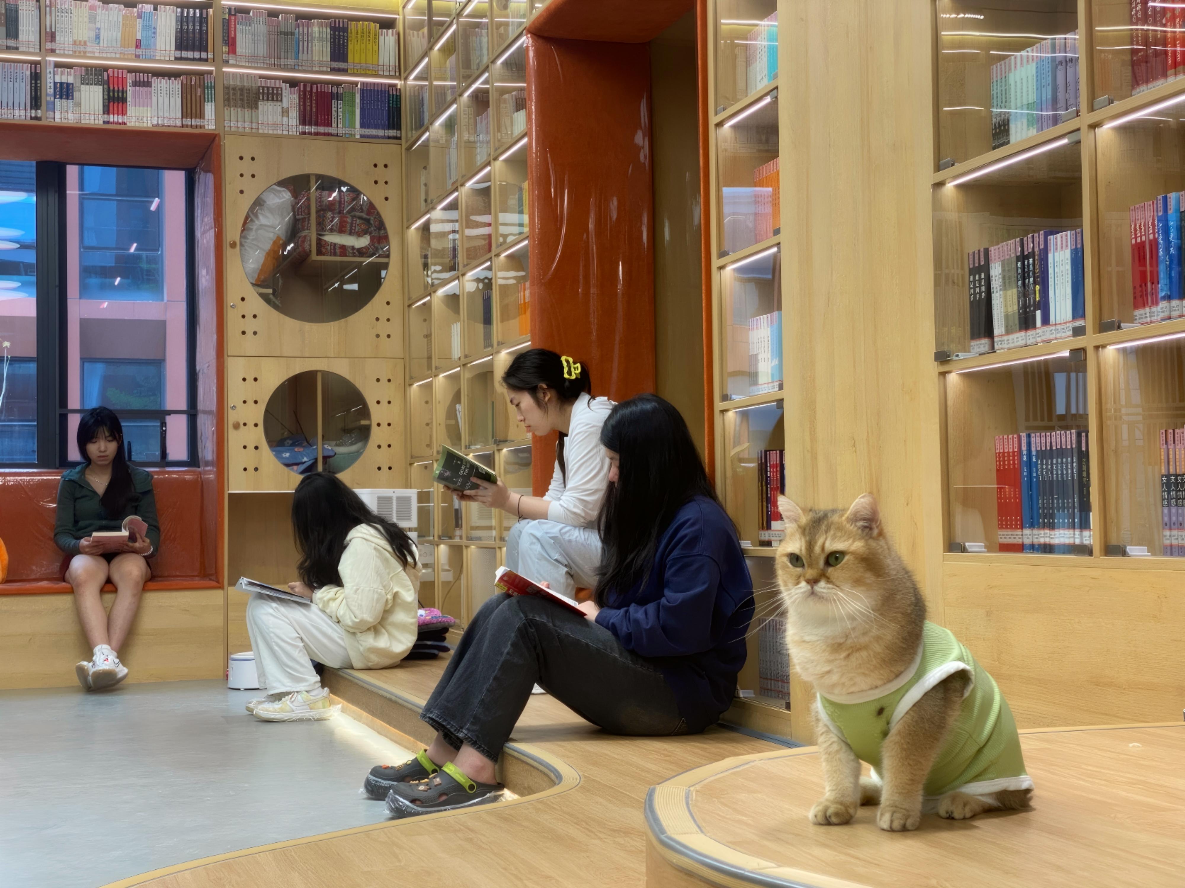 活动伊始,同学们认真了解流程并挑选或携带心仪书籍。在“喵言书语”阅读空间内,轻柔的翻书声与猫咪的呼噜声交织,营造出独特的阅读氛围,让学子们充分感受文字与陪伴的双重治愈。