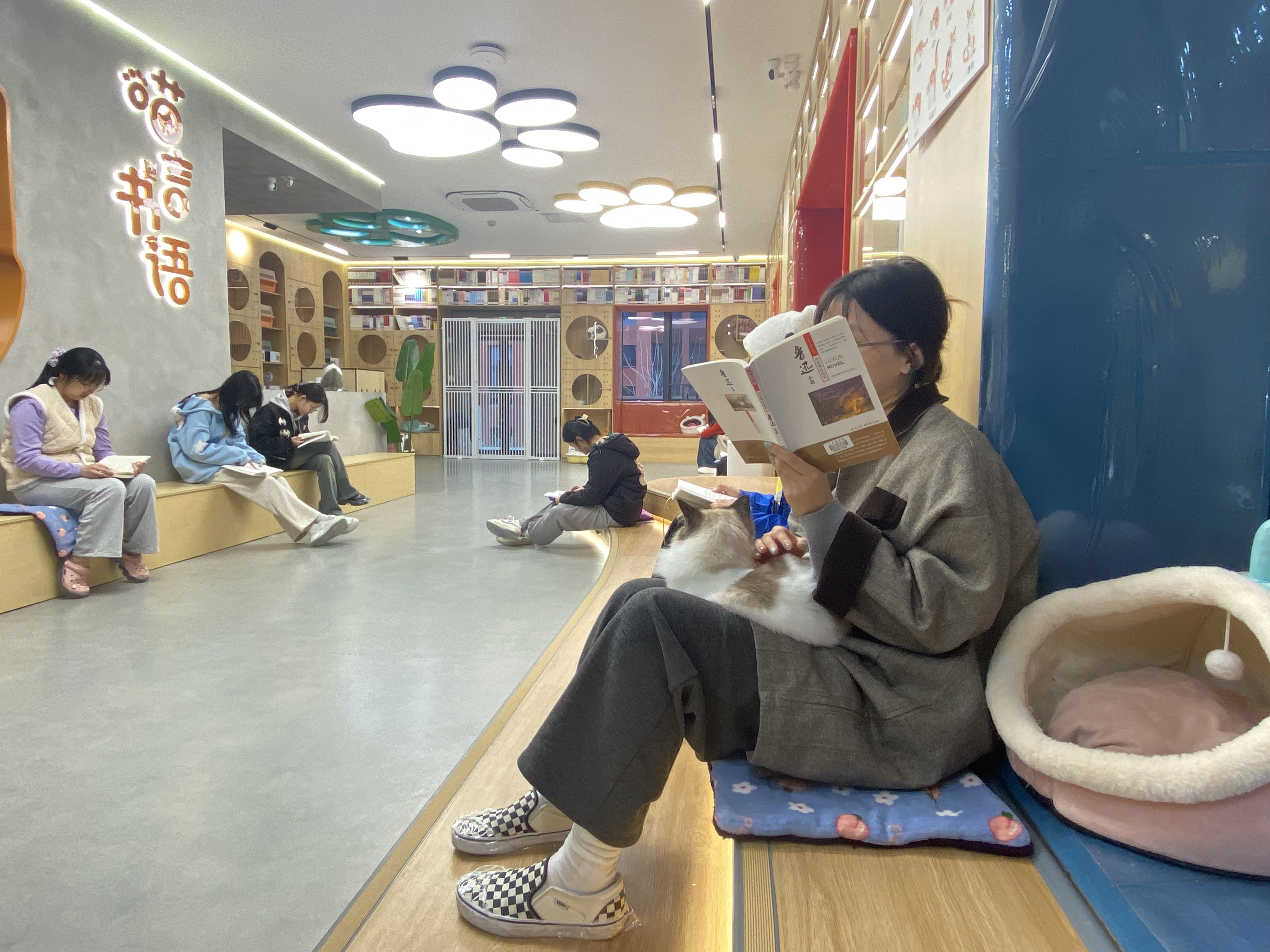 活动结束后,同学们积极分享了他们的阅读体验。外国语学院的陈同学表示,参加“喵言书语”阅读活动是一次充满治愈感的体验,感受到知识获取也可以是温暖的心灵疗愈。数字经济产业学院的高同学也表示,参与“猫伴书境”活动既惊喜又温暖,一边抚摸可爱的猫咪,一边沉浸在书香中与书友交流读书心得,不仅缓解了压力,还让阅读变得更加有趣。