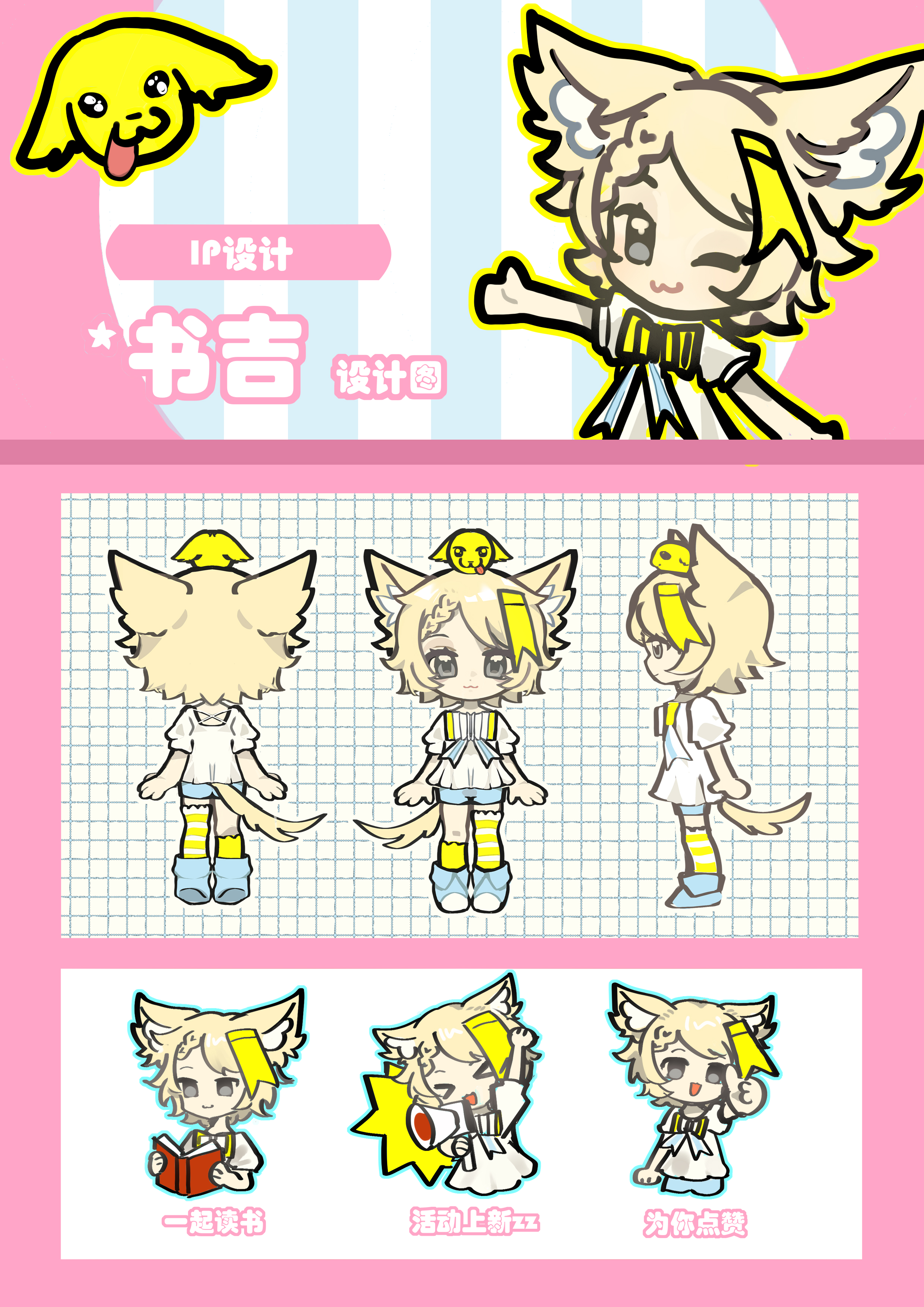 书吉是一只可爱的吉娃娃,名字谐音“书籍”。书吉性格活泼开朗,她热爱阅读,喜欢和他人一起读书,讨论读后感。可能是因为她是一只吉娃娃吧,分享自己的读书感受时,她总是过分激动,面对喜爱的书籍时也是毫不掩饰地表达自己的欣喜。
