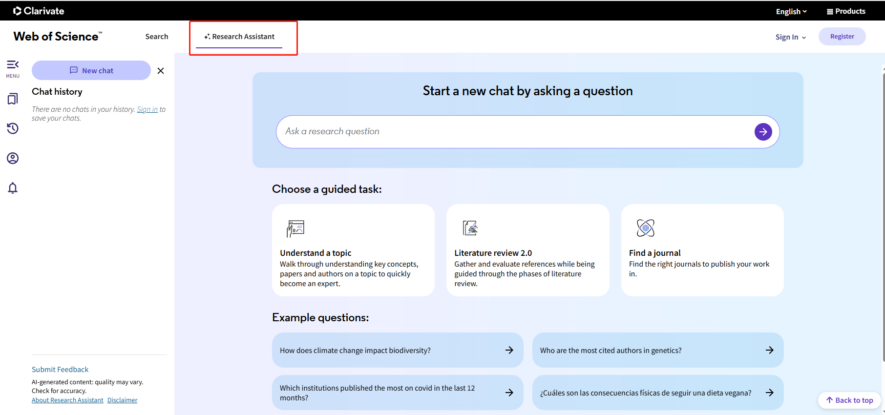为服务学校学科建设与高水平科研发现,同时满足师生对索引分析类外文文献资源的需求,助力各学院科研与教学,图书馆特申请开通科睿唯安旗下web of science 平台的全新生成式人工智能工具 web of science research assistant(web of science 研究助手)的免费试用。