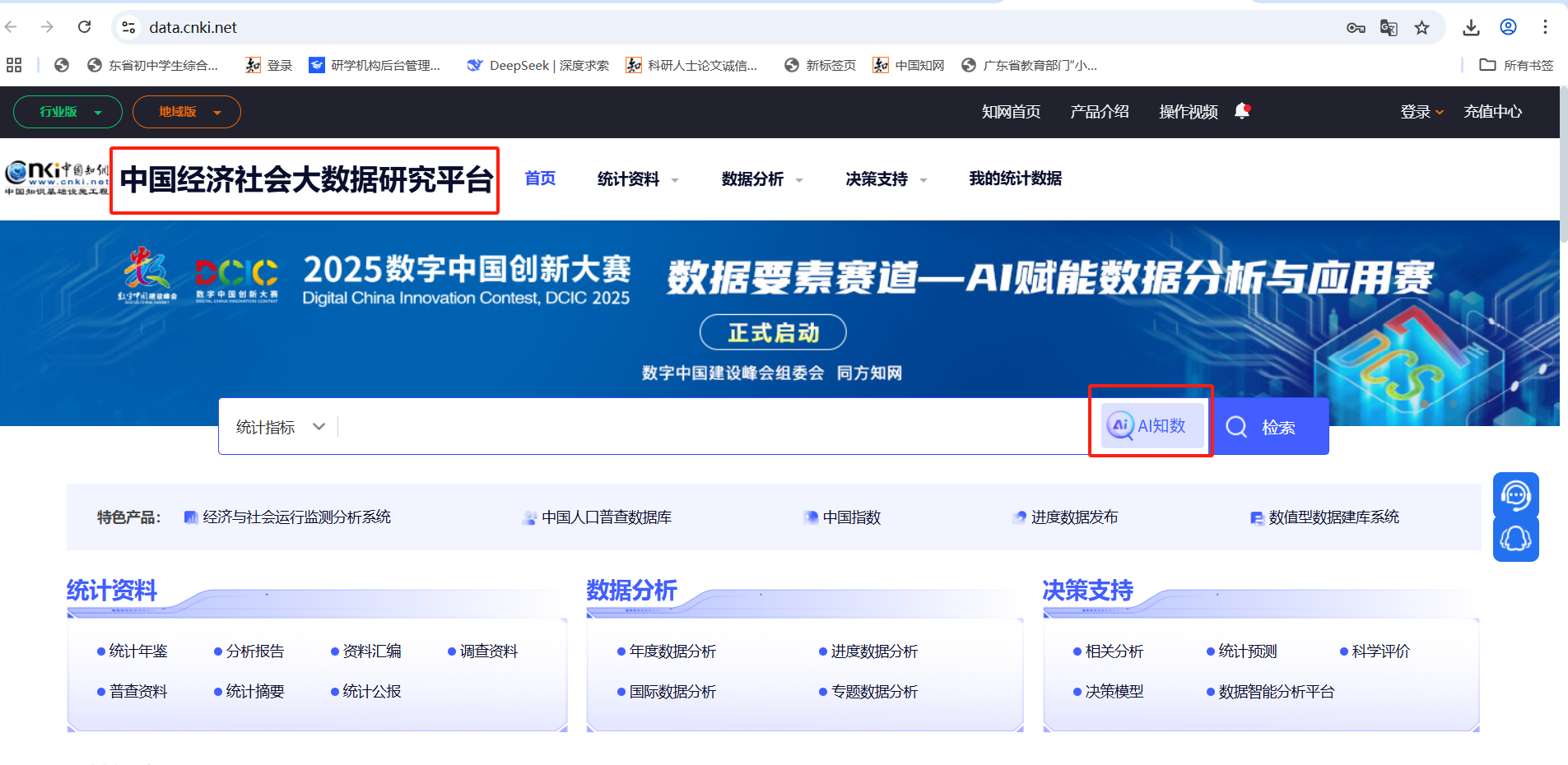 (1)海量权威数据池。覆盖3300万 结构化数据表格、256万 核心统计指标、9亿 权威统计数据,涵盖宏观经济、区域发展、行业动态等多维度的年度、季度、月度数据。同时集成国际数据及海关贸易数据,支持跨领域交叉分析。