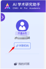 第一步:打开https://aiplus.cnki.net 登录已注册的知网个人账号,点击右上角账号进入个人中心→我的订单→关联机构,选择ai助手功能权益→提交审核信息(如下图)。