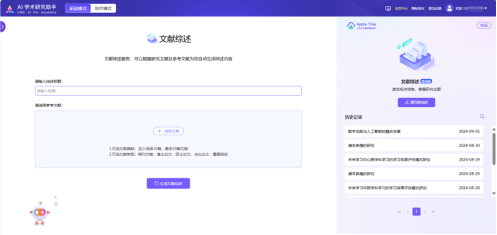 ①文献综述(基础版):基于高度定制化的ai 服务,智能化地整理文献资料,分析文献观点并将不同观点进行分类整合,生成结构清晰、内容精炼的千字综述。可大幅减轻文献调研的繁重压力,助力用户高效探索研究领域,挖掘科研选题。