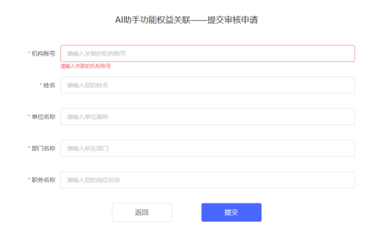 第二步:输入机构账号gzsxyai及个人信息并提交,管理员审核通过后即可使用(如下图)。